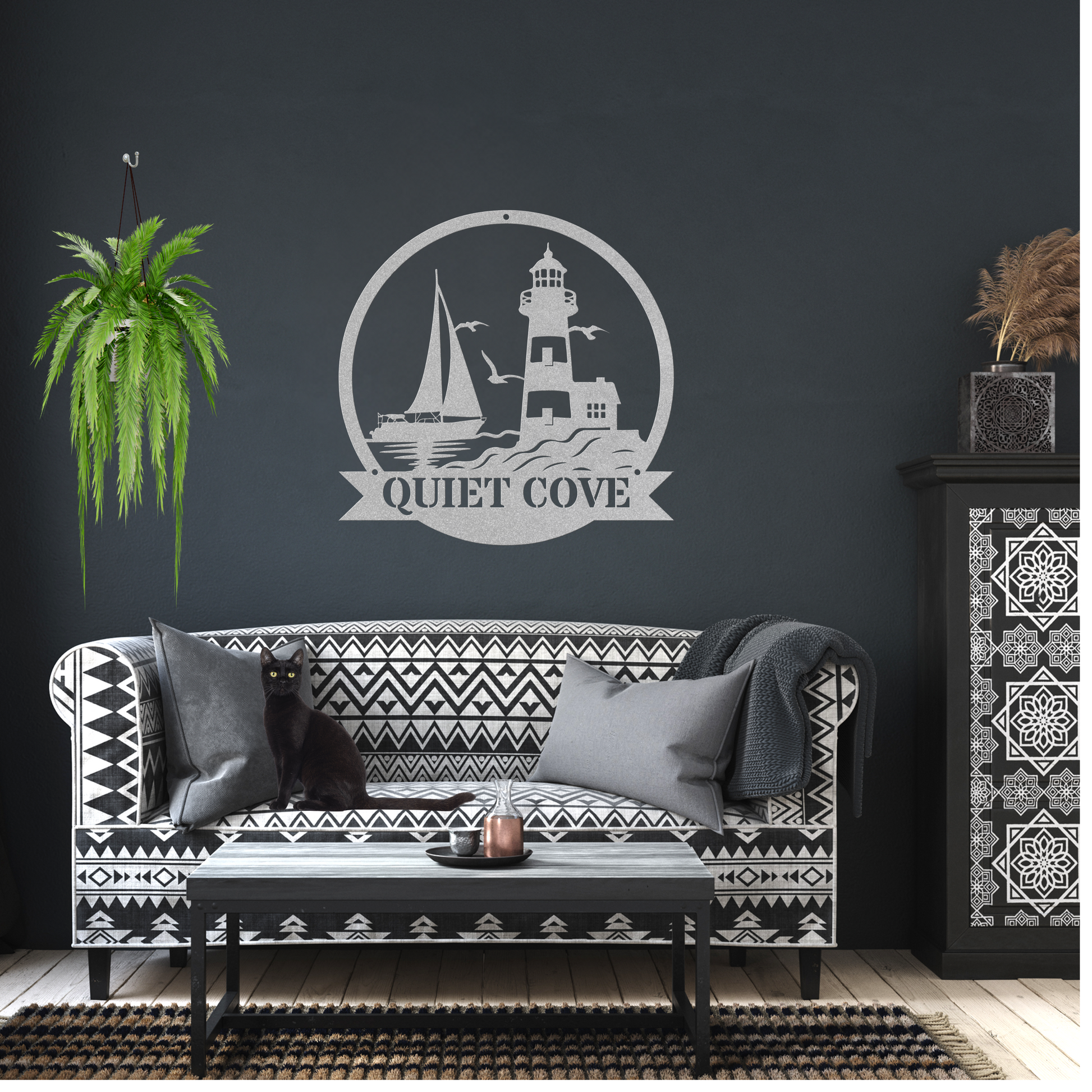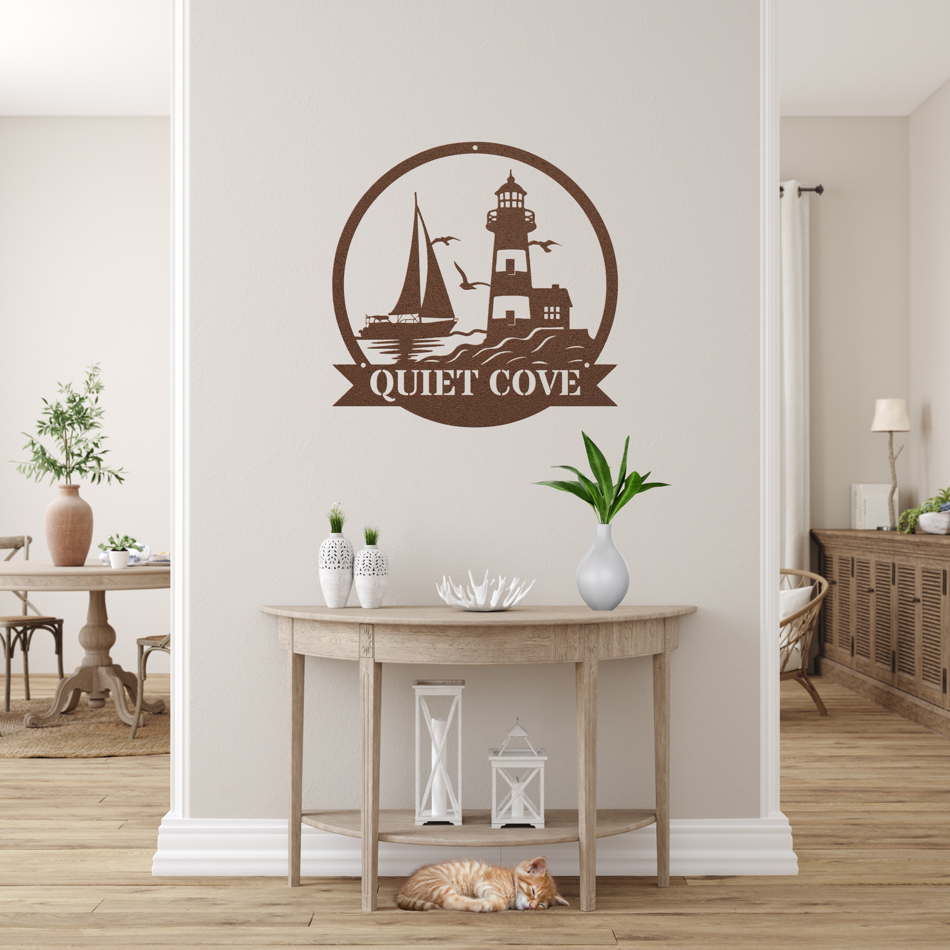 This graceful metal sign captures a sailboat drifting past a steadfast lighthouse, symbolizing both adventure and guidance. It’s a perfect addition to any beach house, dock, or nautical-themed room and makes a meaningful gift for sailors, boaters, or beach homeowners.