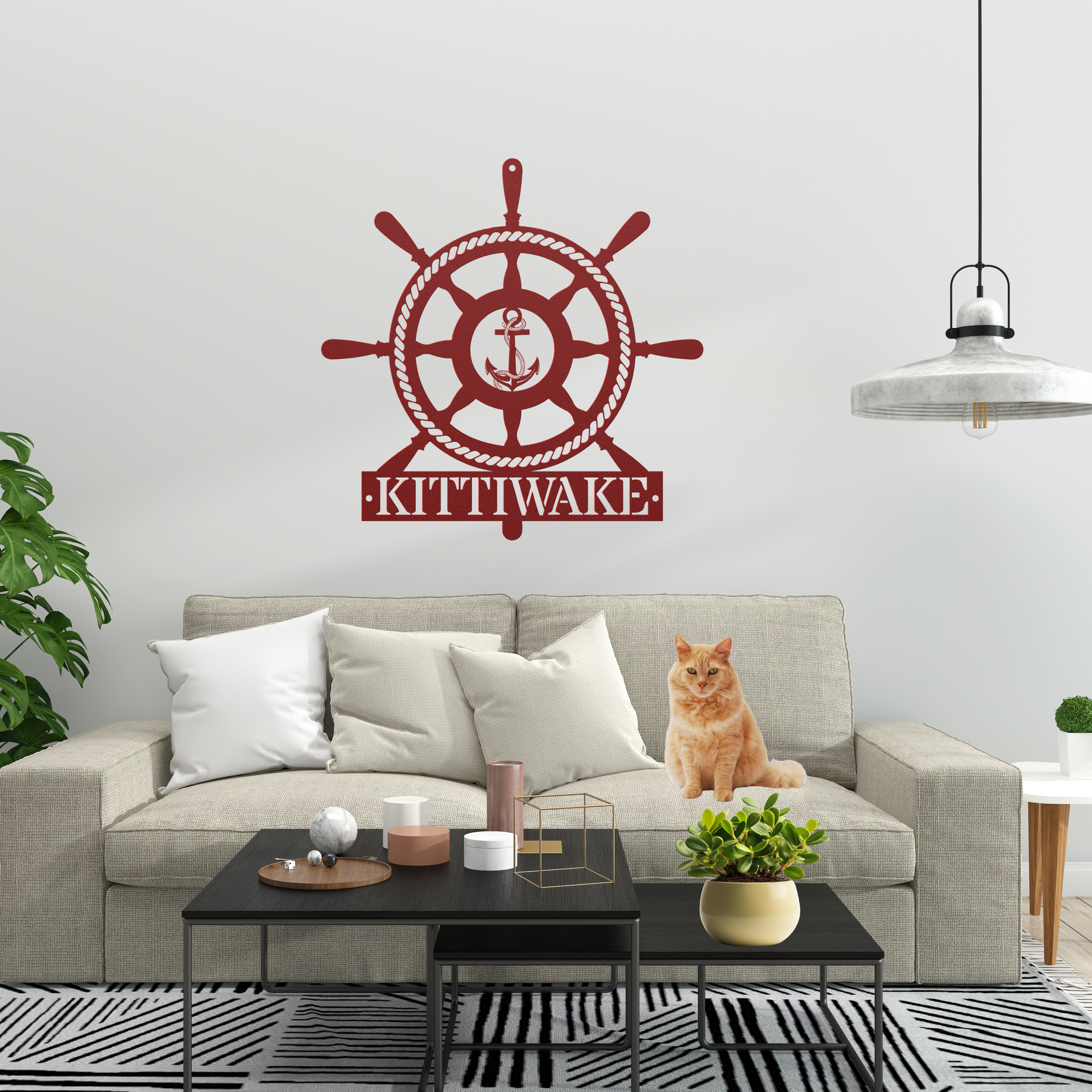 Steer your style and bring the charm of the sea to your space or as a gift with this ship’s wheel metal wall art, designed by maritime tradition.