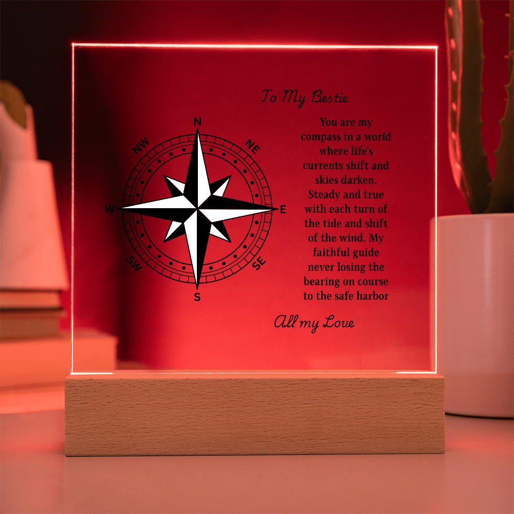 Chart a course straight to the heart with our Engraved Acrylic Compass Plaque — a timeless keepsake from our Engraved Acrylic Collection. Each piece is professionally laser-engraved on premium crystal-clear acrylic and displayed on your choice of a wooden base: