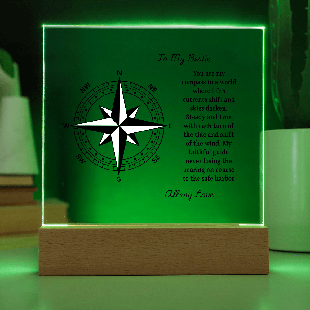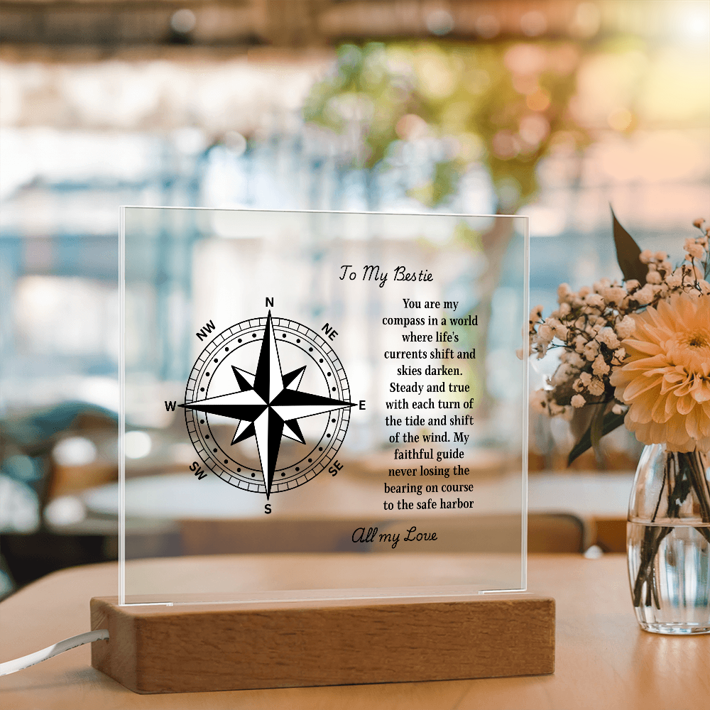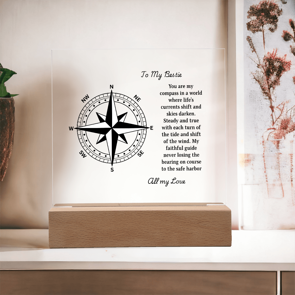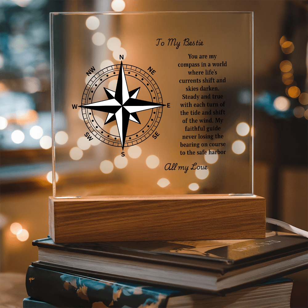 Chart a course straight to the heart with our Engraved Acrylic Compass Plaque — a timeless keepsake from our Engraved Acrylic Plaque Collection. Each piece is professionally laser-engraved on premium crystal-clear acrylic and displayed on your choice of a wooden base:
